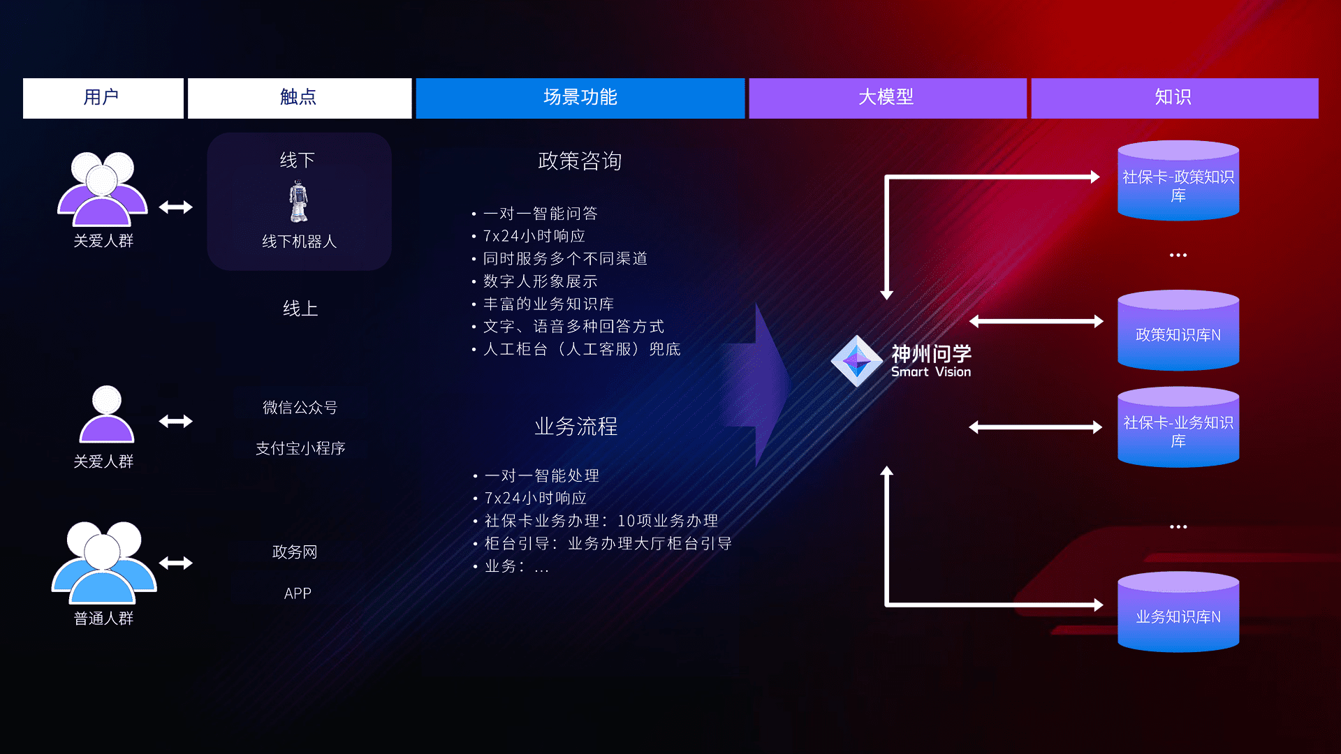 • 线上线下全覆盖:线上提供微信公众号、、、、支付宝小程序、、、、政务网、、、、app多种渠道,,与线下机器人形成完整服务体系。。。